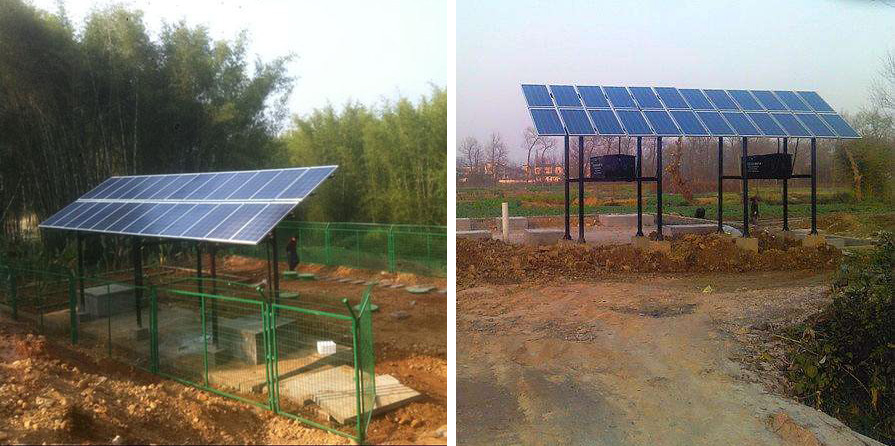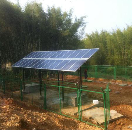 太陽能一體化污水處理工藝是濰坊中僑環(huán)境工程有限公司針對農(nóng)村生活污水特性及建設(shè)、運(yùn)行、管理方面的特點(diǎn),引入太陽能為能源,結(jié)合太陽能光伏技術(shù),借鑒并改造傳統(tǒng)成熟污水處理工藝,使之適應(yīng)太陽能特點(diǎn),強(qiáng)化氮、磷的處理,提高污水處理效率及處理深度,新型的全自動的農(nóng)村生活污水處理新技術(shù)。太陽能污水處理設(shè)備是由太陽能光伏板、蓄電池組、曝氣系統(tǒng)、回流系統(tǒng)、微電腦控制系統(tǒng)和遠(yuǎn)程通訊系統(tǒng)等組成。通過太陽能光伏板將太陽能轉(zhuǎn)為電能,作為曝氣設(shè)施、回流設(shè)施的動力,多余能量儲存于蓄電池中;根據(jù)優(yōu)化調(diào)試后的數(shù)據(jù),通過微電腦控制系統(tǒng)完成自動化控制,自動運(yùn)行曝氣設(shè)施、回流設(shè)施及攪拌設(shè)施。工程處理后水質(zhì)達(dá)到中華人民共和國《污水綜合排放標(biāo)準(zhǔn)》(GB8978—1996) 一級標(biāo)準(zhǔn)。