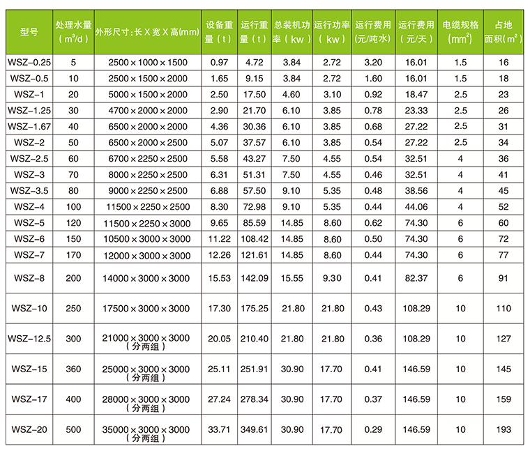 下面是中僑啟迪平板式一體化污水處理設備選項表,可以根據(jù)用戶處理水量選擇型號,數(shù)據(jù)只作為參考,